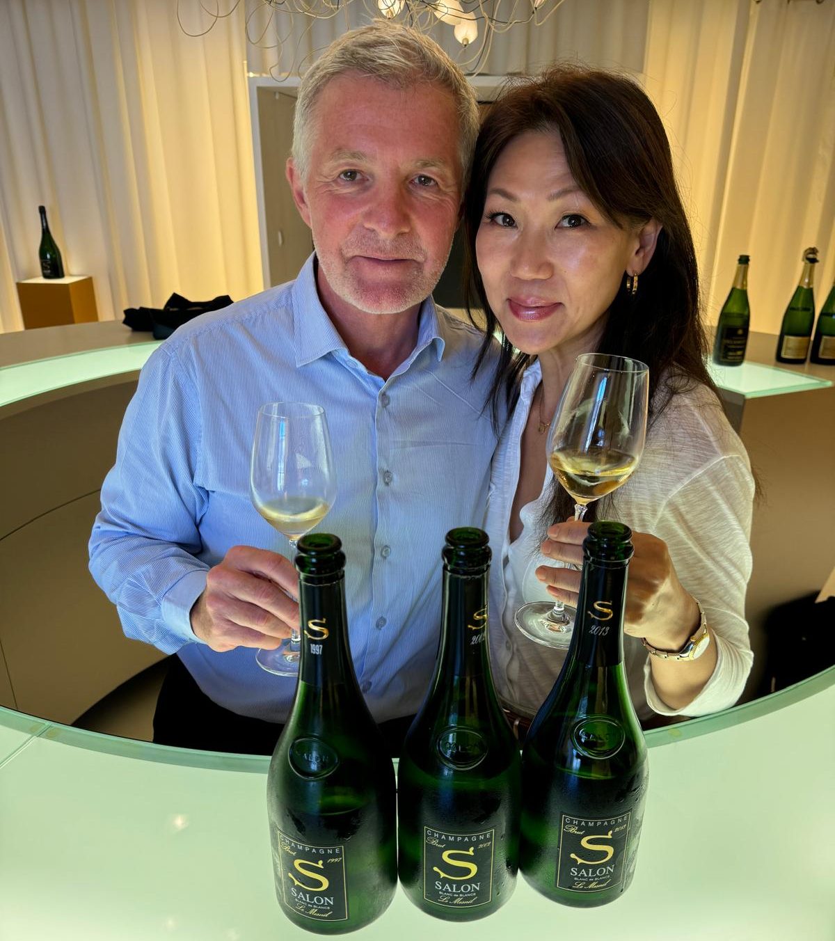 Marie with Didier Depond, the top of Maison Champagne Salon and Champagne Delamotte, making an attempt a few of Salon's newest releases.