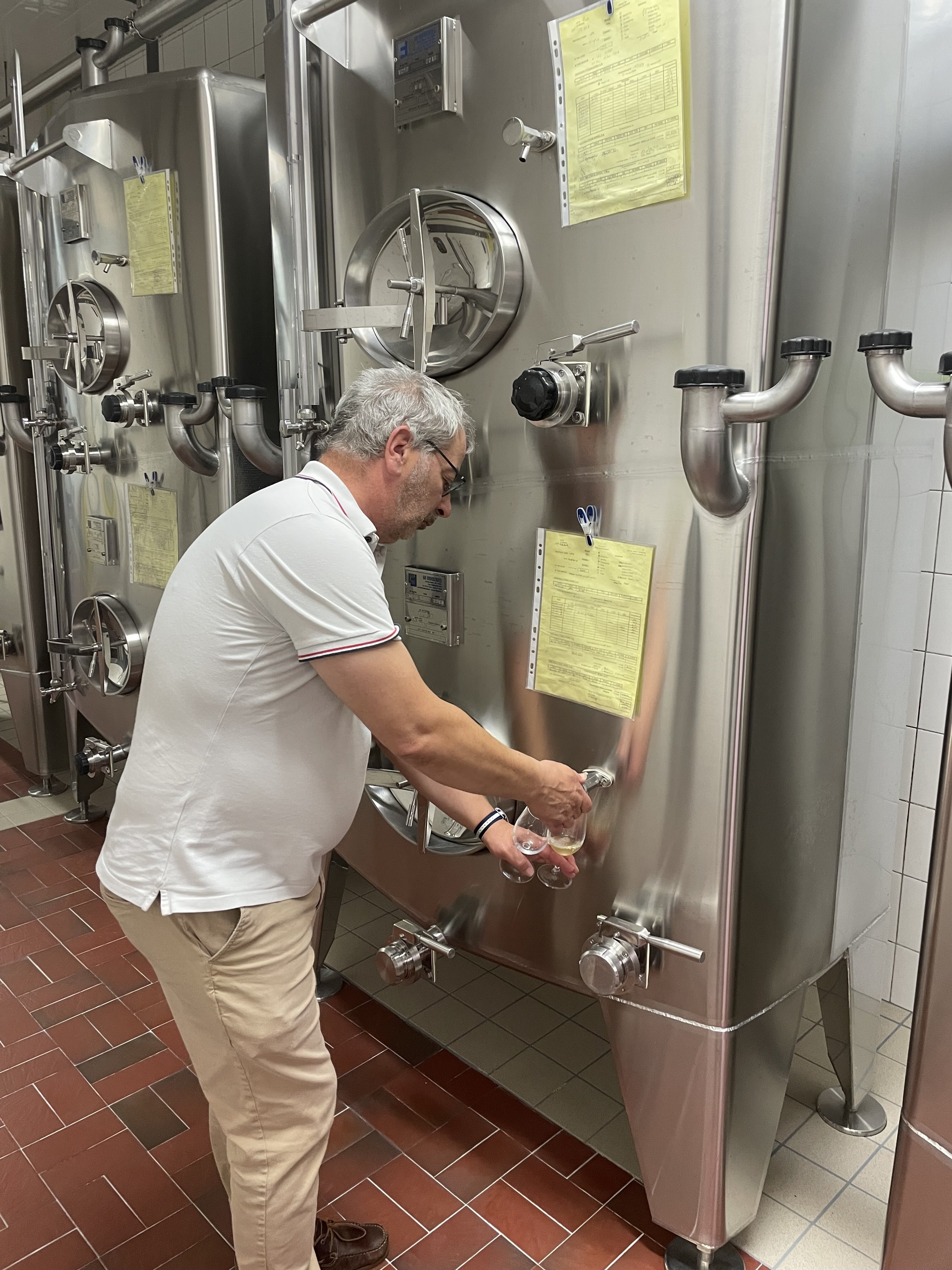 Gilles Marguet, the winemaker and director at cooperative vineyard Champagne Le Mesnil, faucets into some reserve wines.
