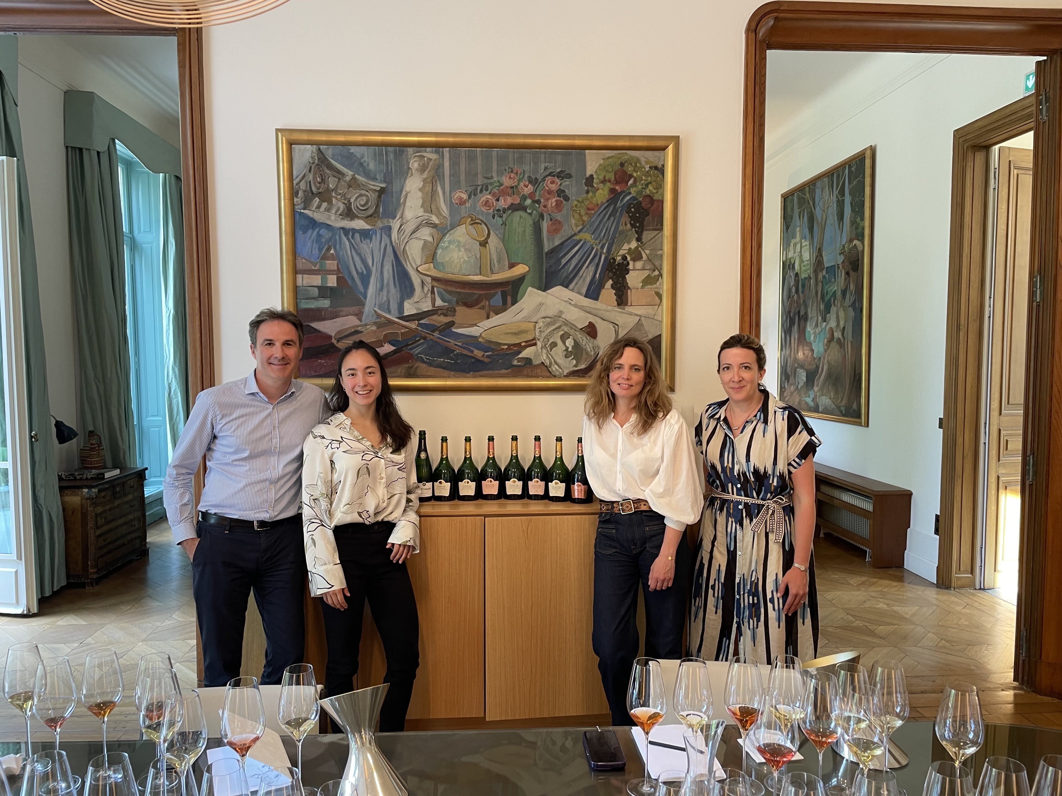 Affiliate Editor Claire Nesbitt (second from left) at Champagne Taittinger with (from left) winemaker Alexandre Ponnavoy, proprietor Vitalie Taittinger and communications supervisor Claire Sarazin.