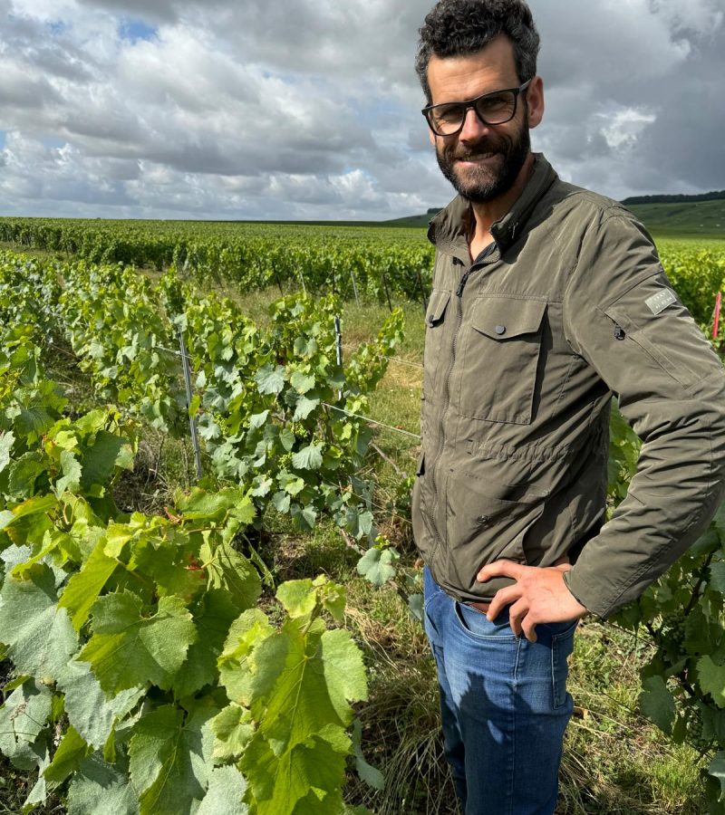 Left: James (left) and Pierre Amillet (proper) of Champagne Robert Moncuit look at chardonnay vines within the Chetillon winery. | Proper: Rodolphe Peters of Champagne Pierre Peters with a few his Chetillon bottlings.